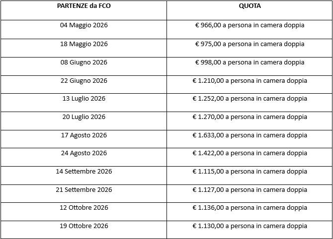 NB: PER CALENDARIO PARTENZE IN ALTRE DATE, SCRIVI A numerouno@