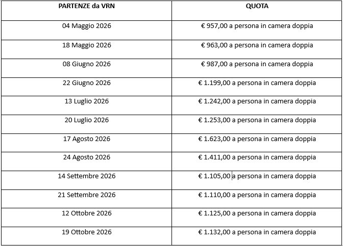 TABELLA PREZZI VOLO DA VRN: Clicca qui