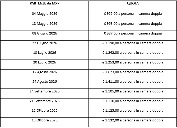 TABELLA PREZZI VOLO DA MXP: Clicca qui